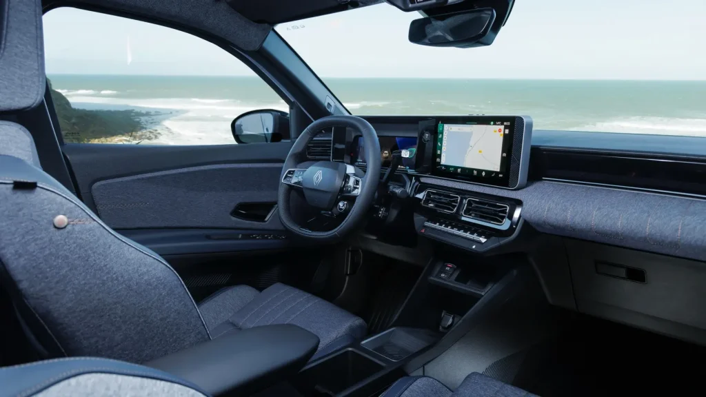 Inside, the Renault 4 mirrors the 5 in layout but introduces alternative fabrics and 4-specific branding. Physical controls for heating, audio, and mirrors enhance usability compared with some rivals. Google-based infotainment and Android Auto integration are standard, and the driver’s display is straightforward to read on the move.